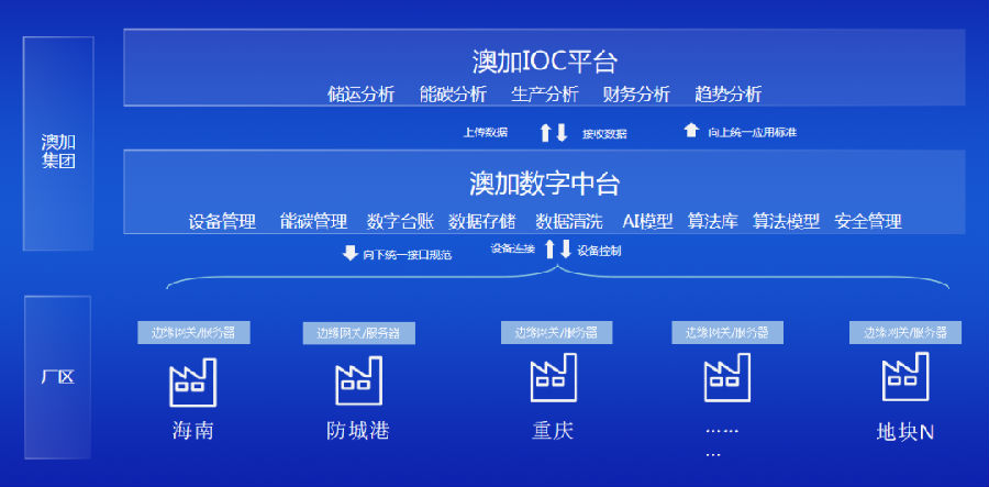 達實以澳加集團統(tǒng)一化管理為目標,將海南、防城港、重慶等生產(chǎn)基地的設(shè)備、生產(chǎn)、財務(wù)等多元化數(shù)據(jù)進行整合,通過達實邊緣服務(wù)器講數(shù)據(jù)傳輸給澳加數(shù)字中臺,中臺對所接收的數(shù)據(jù)進行存儲、過濾、清洗、分析,并應(yīng)用AI、大數(shù)據(jù)、大模型等技術(shù)對澳斯卡糧油智能可視化運營平臺進行數(shù)字賦能,讓平臺發(fā)揮在企業(yè)生產(chǎn)中的重要作用。