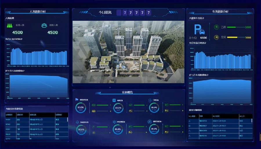 ? 首頁(yè)可視化:平臺(tái)提供設(shè)備總覽頁(yè)面作為系統(tǒng)首頁(yè),把項(xiàng)目重要的子系統(tǒng)設(shè)備數(shù)據(jù)或業(yè)務(wù)數(shù)據(jù)可視化展示,運(yùn)用BIM 3D模型呈現(xiàn)智慧建筑的整體情況;后勤人員可直觀查看到建筑的整體運(yùn)行情況,同時(shí)也讓業(yè)主清晰地了解整個(gè)項(xiàng)目的情況,可以降低工作量,提升業(yè)主的效率及滿意度。