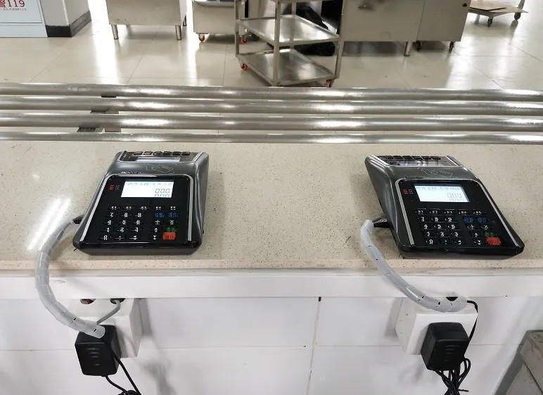 圖:?jiǎn)T工餐廳現(xiàn)場(chǎng)安裝的消費(fèi)機(jī)