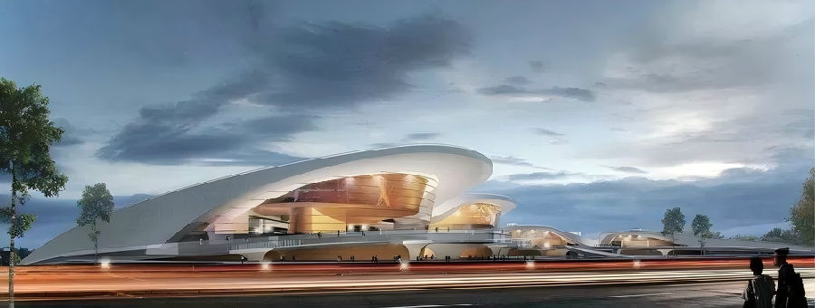 山東日照科技文化中心位于青島路以東、濟南路以南區(qū)域,占地面積514畝,總建筑面積45.2萬平方米,是集科技展覽、旅游服務(wù)、購物、文化為一體的綜合建筑群,主要有博覽會展和文化交流等功能,包括國際會展中心、大劇院、未來館等。