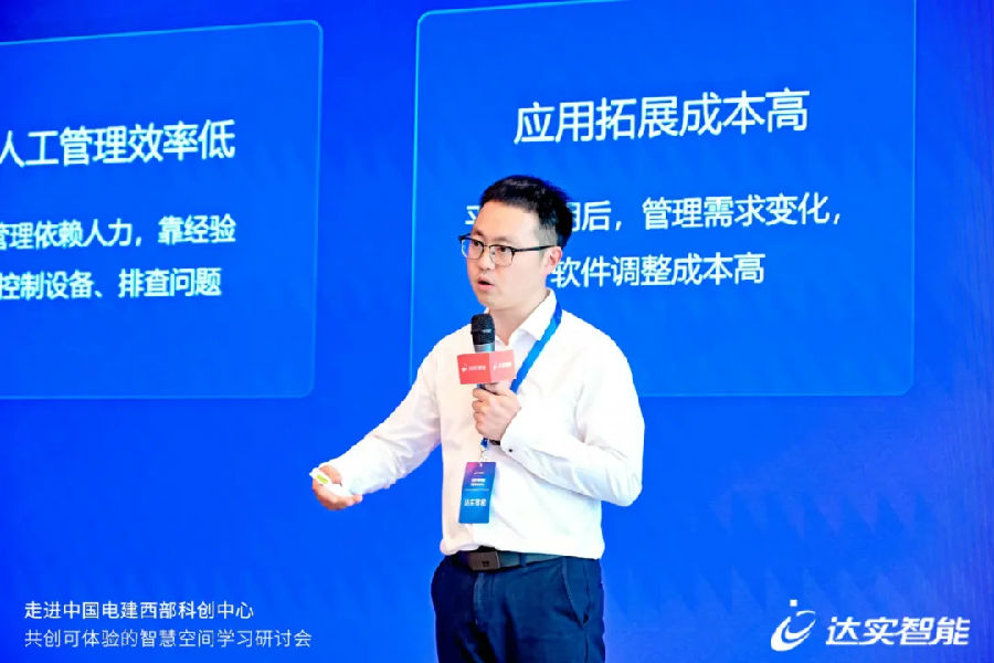 達實物聯(lián)成都分公司售前技術(shù)經(jīng)理陳春林帶來了《如何運用達實AIoT智能物聯(lián)網(wǎng)管控平臺打造數(shù)字化中樞》的精彩分享。達實AIoT平臺采用1個平臺+4種交互端口+N個智慧應(yīng)用的創(chuàng)新架構(gòu),為企業(yè)園區(qū)及辦公大樓打造數(shù)字化中樞,已經(jīng)獲得三級等保認證,符合CMMI5軟件成熟度認證。據(jù)陳春林介紹,平臺應(yīng)用敏捷迭代、業(yè)務(wù)靈活編排、統(tǒng)一設(shè)備管理、數(shù)據(jù)高效物聯(lián),且能實現(xiàn)一站式交付,目前已經(jīng)服務(wù)到10000+用戶。據(jù)了解,中國電力建設(shè)集團有限公司(簡稱中國電建)是全球清潔低碳能源、水資源與環(huán)境建設(shè)的引領(lǐng)者,業(yè)務(wù)遍及全球130多個國家和地區(qū),居2023《財富》世界500強第105位,2023年營業(yè)收入近8000億元。作為本次活動舉辦地,中國電建西部科創(chuàng)中心坐落于天府新區(qū)總部商務(wù)區(qū),項目總投資10.92億元,建筑面積為10.6萬平方米,是兼具高星級商務(wù)酒店、國際會議中心等業(yè)態(tài)的超5A甲級辦公寫字樓。