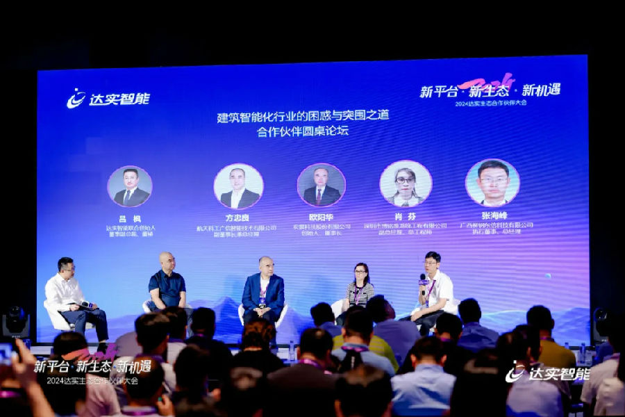 在圓桌對(duì)話環(huán)節(jié),達(dá)實(shí)智能聯(lián)合創(chuàng)始人、董事副總裁、董秘呂楓作為主持人,與4位集成商企業(yè)代表,圍繞企業(yè)的發(fā)展戰(zhàn)略和行業(yè)突圍之道,展開了深度對(duì)話。