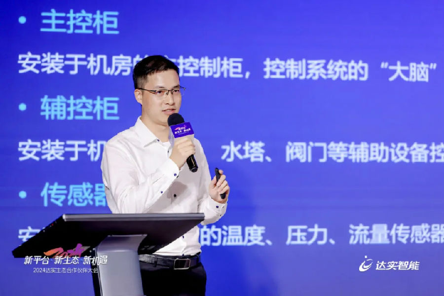 達(dá)實(shí)智能董事長(zhǎng)助理、建筑節(jié)能事業(yè)部項(xiàng)目總監(jiān)張仕勇帶來了達(dá)實(shí)在建筑節(jié)能領(lǐng)域的實(shí)踐分享。達(dá)實(shí)提供的中央空調(diào)節(jié)能控制系統(tǒng)整體解決方案,以系統(tǒng)全生命周期成本最低指標(biāo)為目標(biāo),基于全局優(yōu)化的AI算法,使系統(tǒng)能效提升30-60%,高度智能化的系統(tǒng)可實(shí)現(xiàn)冷站“無人值守”。