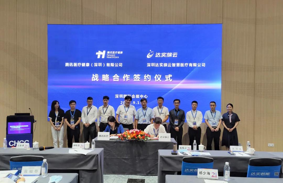 大會第一天,在達實智能專場,深圳達實智能股份有限公司控股子公司深圳達實旗云智慧醫(yī)療有限公司與騰訊醫(yī)療健康(深圳)有限公司簽署戰(zhàn)略合作協(xié)議,雙方將圍繞健康城市、區(qū)域醫(yī)療、智慧醫(yī)院等領(lǐng)域開展進一步的合作,共同探索醫(yī)療互聯(lián)網(wǎng)、數(shù)字健康的新路徑、新模式,促進行業(yè)融合與創(chuàng)新。