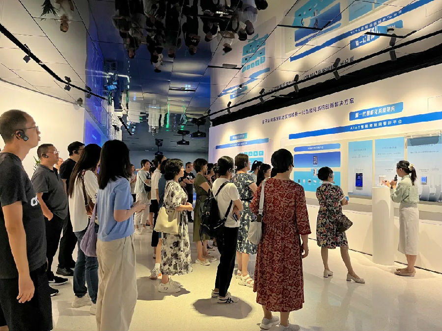 在達(dá)實(shí)大廈,成都市衛(wèi)生健康系統(tǒng)工會(huì)一行首先參觀了達(dá)實(shí)自主研發(fā)的AIoT智能物聯(lián)網(wǎng)管控平臺(tái)及智慧空間應(yīng)用展示中心,詳細(xì)了解了達(dá)實(shí)的發(fā)展歷程、研發(fā)與創(chuàng)新、物聯(lián)網(wǎng)終端產(chǎn)品、新一代解決方案及達(dá)實(shí)企業(yè)文化。