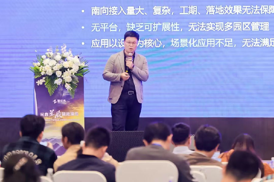 會(huì)上,達(dá)實(shí)物聯(lián)AIoT產(chǎn)品推廣部總監(jiān)雍小鵬受邀作“AIoT平臺(tái)助力智慧園區(qū)數(shù)字化運(yùn)營(yíng)”主題演講。