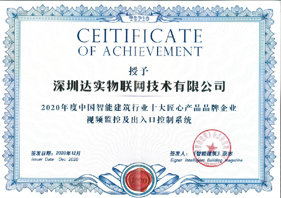 評選秉承著公、平公、正公開的原則,通過網(wǎng)上投票和專家評選的方式產(chǎn)生十大匠心產(chǎn)品品牌企業(yè)。達實物聯(lián)連斬兩項榮譽--“2020年度中國智能建筑行業(yè)十大匠心產(chǎn)品品牌企業(yè)視頻監(jiān)控及出入口控制系統(tǒng) ”,“智慧城市運營管理平臺 ”。