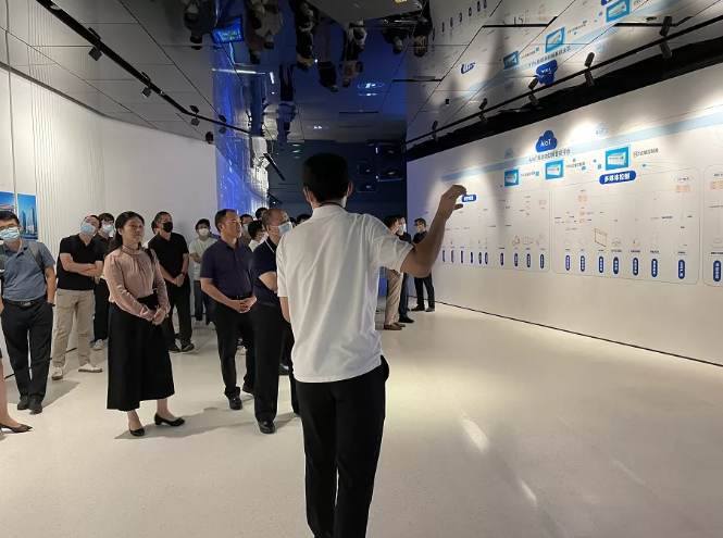 一行領(lǐng)導(dǎo)參觀了達實智能的運營指揮中心。在運營指揮中心大屏前,達實同事講解了達實自主研發(fā)的AIoT物聯(lián)網(wǎng)智能管控平臺是如何實現(xiàn)樓內(nèi)各個場景的設(shè)備監(jiān)測與集中管控,為一行領(lǐng)導(dǎo)講述了物聯(lián)網(wǎng)技術(shù)給達實大廈帶來的三大提升——節(jié)約能耗25%,減少物業(yè)人力25%,提升出租率25%。