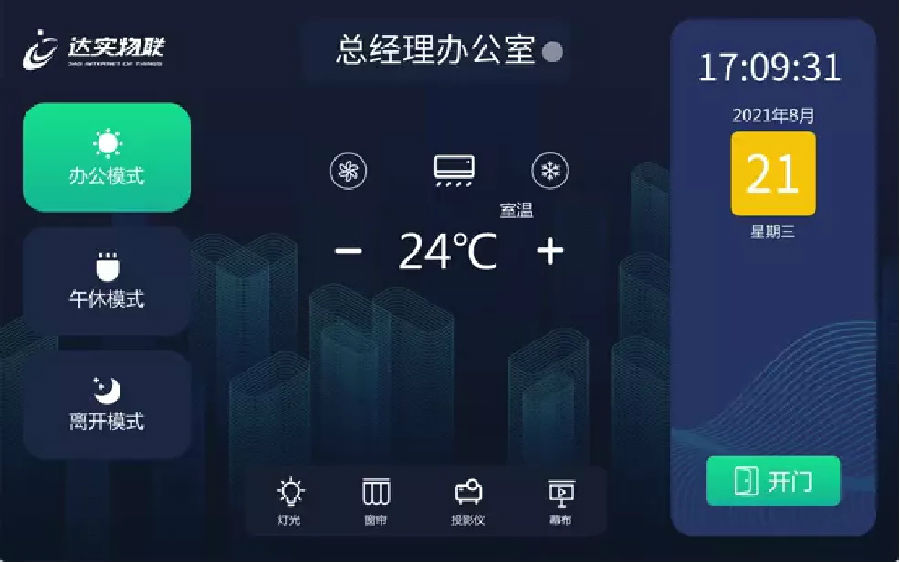 智慧辦公微場(chǎng)景應(yīng)用:達(dá)實(shí)AI人臉識(shí)別終端依托于AIoT物聯(lián)網(wǎng)智能管控平臺(tái),將人臉識(shí)別與辦公管理聯(lián)動(dòng),作為辦公設(shè)備的控制終端,解決智慧辦公的日常需求,實(shí)現(xiàn)對(duì)門(mén)禁、燈光、空調(diào)、投影、窗簾等動(dòng)態(tài)控制。