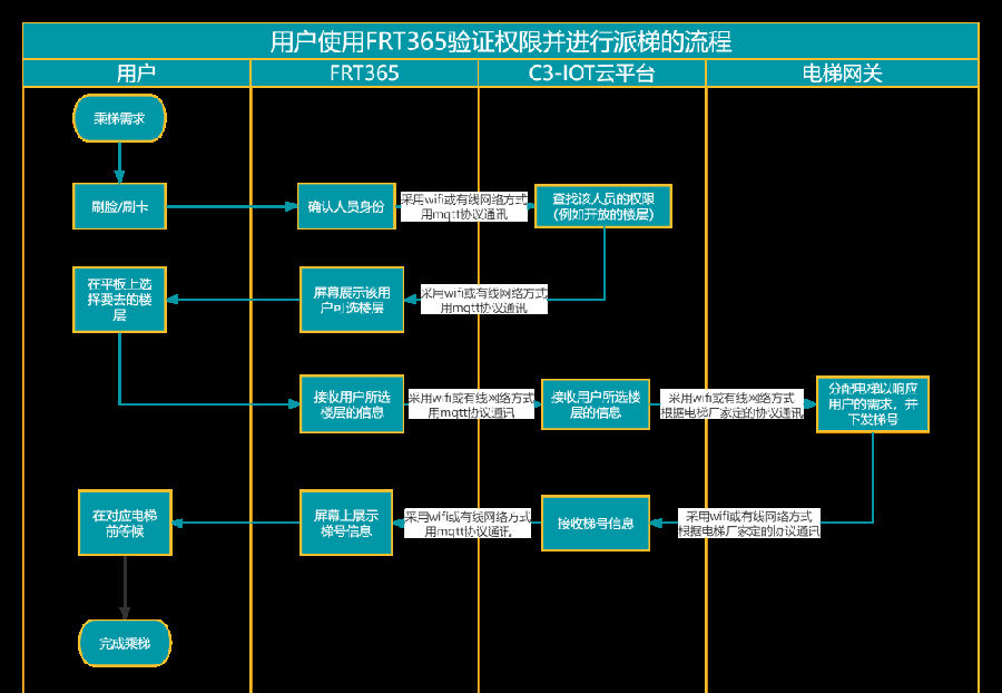 達(dá)實(shí)FRT365智慧派梯屏利用人臉識別、屏下刷卡(或NFC)等物聯(lián)網(wǎng)身份識別方式進(jìn)行高效電梯派梯,可引導(dǎo)同層用戶乘坐相同電梯,減少電梯停層次數(shù),縮短用戶等候、乘梯時間,同時通過顯示電梯當(dāng)前的運(yùn)行狀態(tài)(當(dāng)前層、上下行方向)來降低用戶的焦慮情緒,極大地提高電梯運(yùn)力以及用戶乘梯體驗(yàn)。1、權(quán)限認(rèn)證