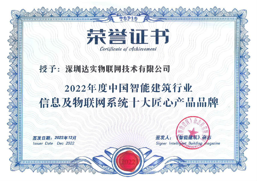 為了響應(yīng)國(guó)家經(jīng)濟(jì)高質(zhì)量發(fā)展戰(zhàn)略,弘揚(yáng)精益求精的“工匠精神”,促進(jìn)智能建筑行業(yè)企業(yè)創(chuàng)新轉(zhuǎn)型發(fā)展,《綠色建造與智能建筑》雜志社開展了“2022年度中國(guó)智能建筑行業(yè)十大匠心產(chǎn)品品牌企業(yè)評(píng)選”工作。憑借多年來在建筑智能化行業(yè)的探索與實(shí)踐、創(chuàng)新與成果,深圳達(dá)實(shí)物聯(lián)網(wǎng)技術(shù)有限公司在眾多品牌中脫穎而出,再度斬獲“建筑園區(qū)智慧管控平臺(tái)十大新銳品牌”及“信息及物聯(lián)網(wǎng)系統(tǒng)十大匠心產(chǎn)品品牌”兩項(xiàng)大獎(jiǎng)。
