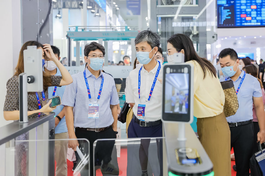 圖:參展嘉賓體驗達實人臉無感核酸檢測識別“電子哨兵”